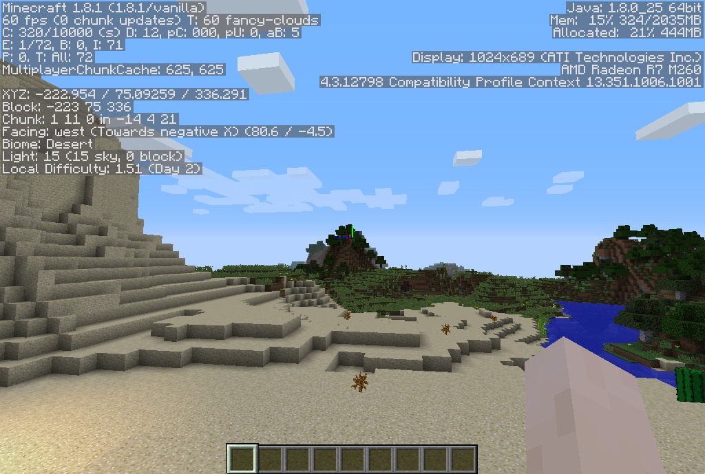 It would be interesting if there were more performance measurements for Minecraft which are directly comparable. The following should be enough information to reproduce these tests. If you have Minecraft it will display all the information you need on-screen simply by pressing ‘F3’ in the game.